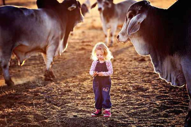 Jacqui Nightscales, een portret fotograaf, heeft een zeldzaam en mooi moment vastgelegd tussen Tatum en een enorme stier. Het meisje is amper twee jaar oud en wordt vrienden met een gigantische kudde Brahman stieren. De prachtige foto's tonen hoe de dieren hoog boven het kleine blonde meisje torenen. Op sommige foto's aait ze de dieren, op andere staat ze onder hen te kijken naar het wonder van de natuur.