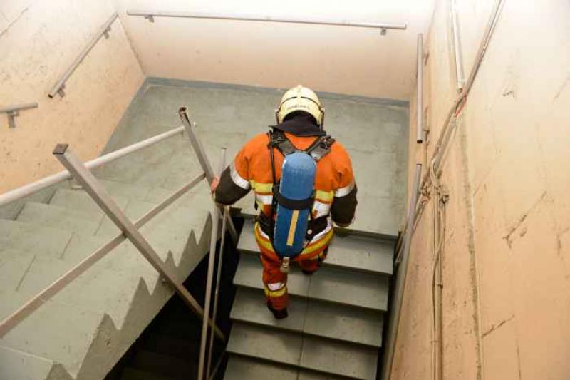 Ook vijfentwintig Brusselse brandweerlui namen deel in volledige uitrusting en met zuurstofmasker.