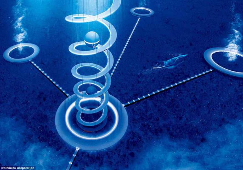 Shimizu beweert dat het verschil in temperatuur en druk tussen het oppervlak en de bodem gebruikt kan worden om energie op te wekken. Elke Ocean Spiral zou ongeveer 25 miljard dollar kosten en de eerste kan klaar zijn tegen 2030.