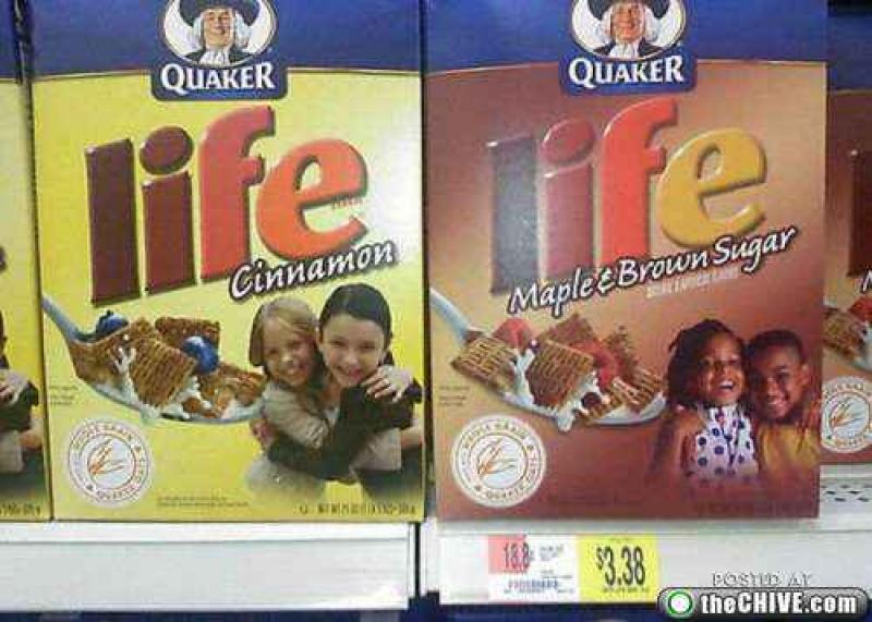 Een geval in hetzelfde schuitje is dat van ontbijtgranen Quaker. Zij besloten om blanke mensen te gebruiken om hun ontbijtgranen met kaneel te promoten, terwijl die met de smaak van bruine suiker door kinderen met een donkere huidskleuren gepromoot werden. Dat schoot velen in het verkeerde keelgat, waardoor het merk onder vuur kwam te liggen.
