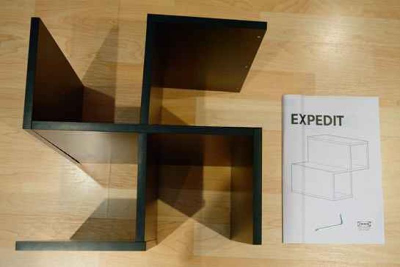 Elk huishouden telt minstens een kast van Ikea's reeks Expedit, omdat ze voor allerlei dingen - zoals het opbergen van vinyl - handig zijn. Maar wie niet zorgvuldig de instructies volgt, kan wel uitkomen bij een boekenkast dat lijkt op een swastika. Niet meteen de slimste zet van de persoon in kwestie, want het heeft Ikea heel wat miserie gekost.