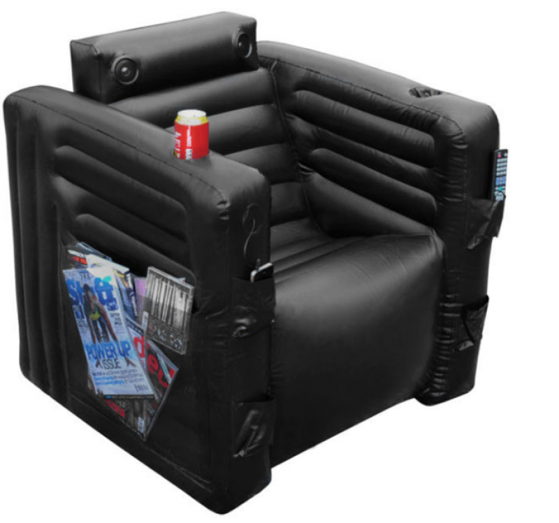 Vergeet die kleine en oncomfortabele kampeerstoelen. Met deze luxueuze opblaasbare zetel trek je op de camping meteen alle aandacht naar je toe. De zetel zit niet alleen stukken aangenamer dan het doorsnee festivalstoeltje, hij is ook gemakkelijker op te bergen en neemt veel minder plaats in beslag. Bovendien is hij uitgerust met luidsprekers waarmee je muziek kan afspelen en een bekerhouder voor al je drankjes.