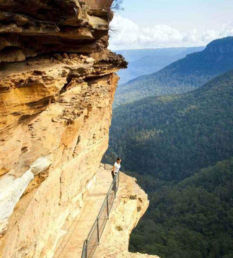 Deze bergachtige regio in New South Wales ligt nabij de grootstad Sydney in Australië. De wandelroute bevat leuningen, ladders en uitkijkposten die je de mooiste uitzichten geeft over de Jamison Valley. Helaas niet weggelegd voor mensen met hoogtevrees.