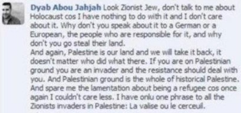 Abou Jahjah heeft op Twitter uitgehaald naar het Vlaams Belang. Vlaams Belang-voorzitter Tom van Grieken had eerder bij het parket aangifte gedaan tegen Dyab Abou Jahjah wegens «aanzetten tot moord en terrorisme». Aanleiding was een bericht van de Movement X-voorzitter op de sociale netwerksite Facebook. Daarin schrijft Abou Jahjah in een discussie over joden in Palestina: «La valise ou le cerceuil» (de koffer of de doodskist). Vlaams Belang ziet daarin het «aanzetten tot moord en terrorisme». Jahjah laat nu op Twitter weten dat dit verzinsels zijn. Het kan ook een oud bericht dat hij gepost heeft. Daarover is Jahjah niet helemaal duidelijk in zijn tweets.