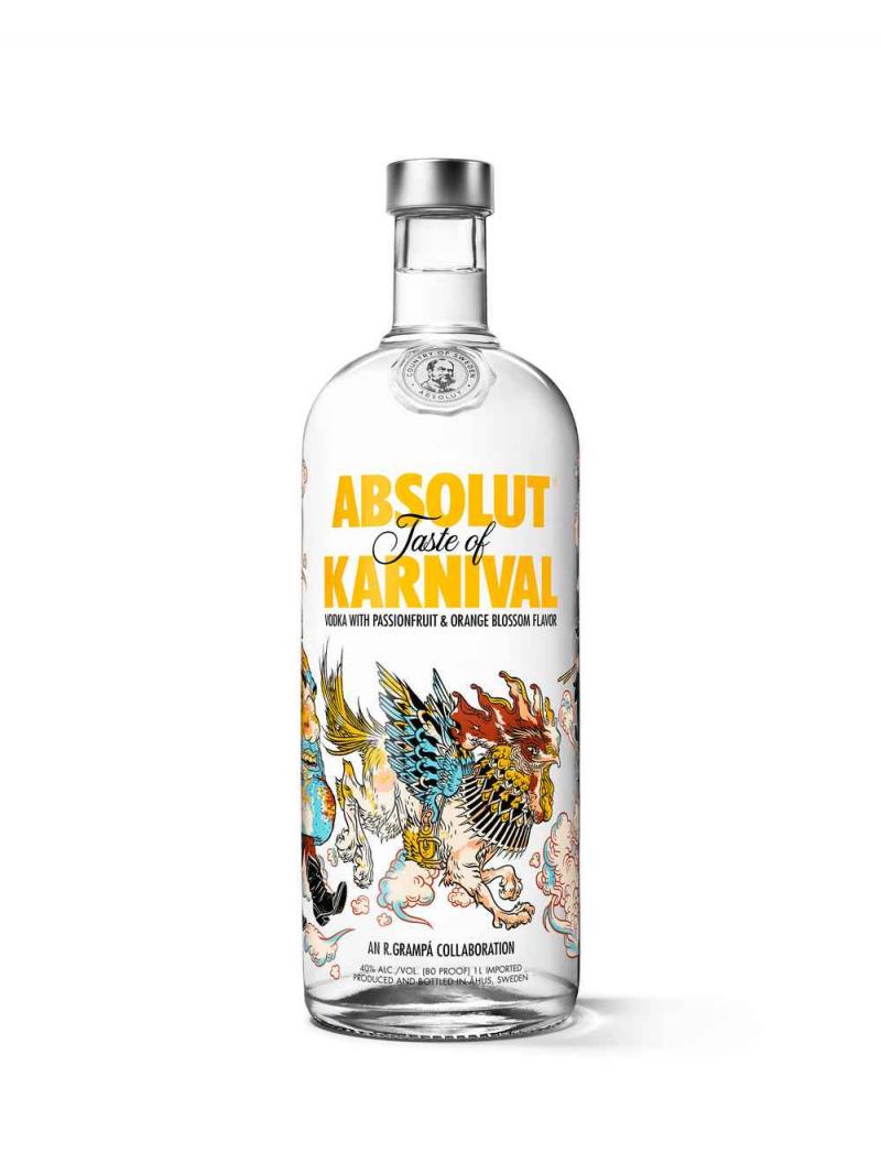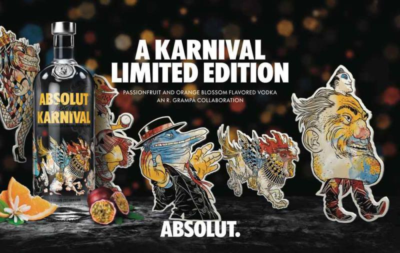 Om de festiviteiten rond carnaval in Zuid-Amerika te vieren, voegt Absolut Vodka twee nieuwe smaken toe aan hun assortiment: passievrucht en oranjebloesem. In de gelimiteerde reeks 'Karnival' zullen deze smaken opgevrolijkt worden met kleurrijke illustraties op de flessen.