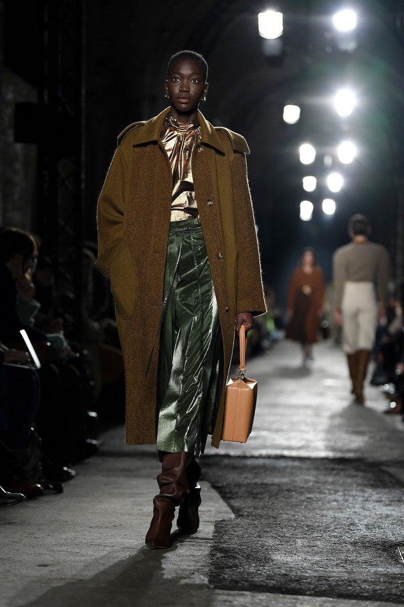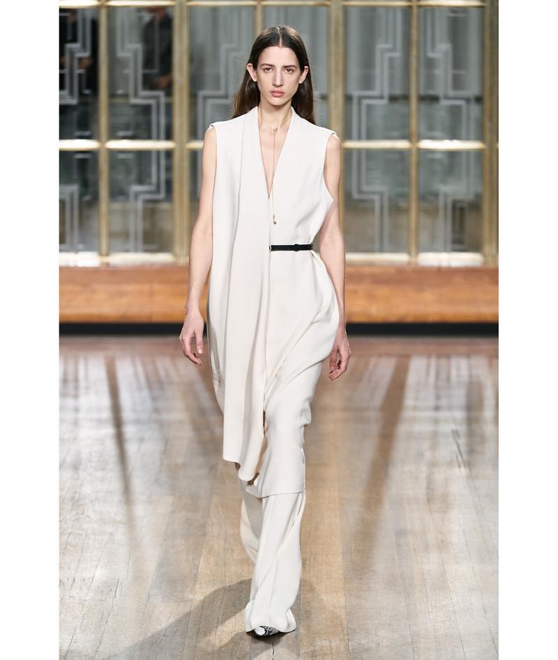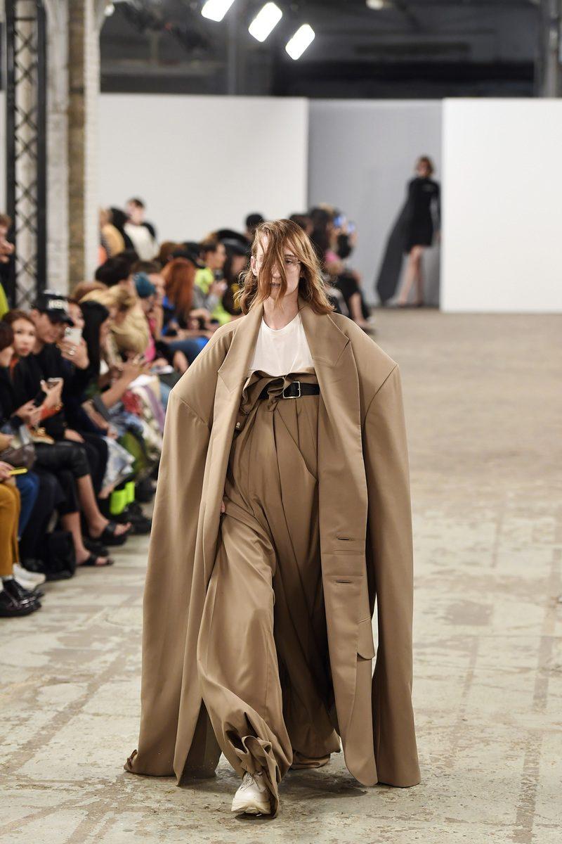 In Londen presenteerde Petar Petrov een eerste geraffineerd en luxueus defilé, met vloeiende en genereuze silhouetten. De mouwen zijn extra lang en wijd, het broekpak wordt breed gedragen en samengebonden door een dunne riem. De stukken zijn modulair. Zo kunnen gedrapeerde jassen op verschillende manieren worden vastgeknoopt.
