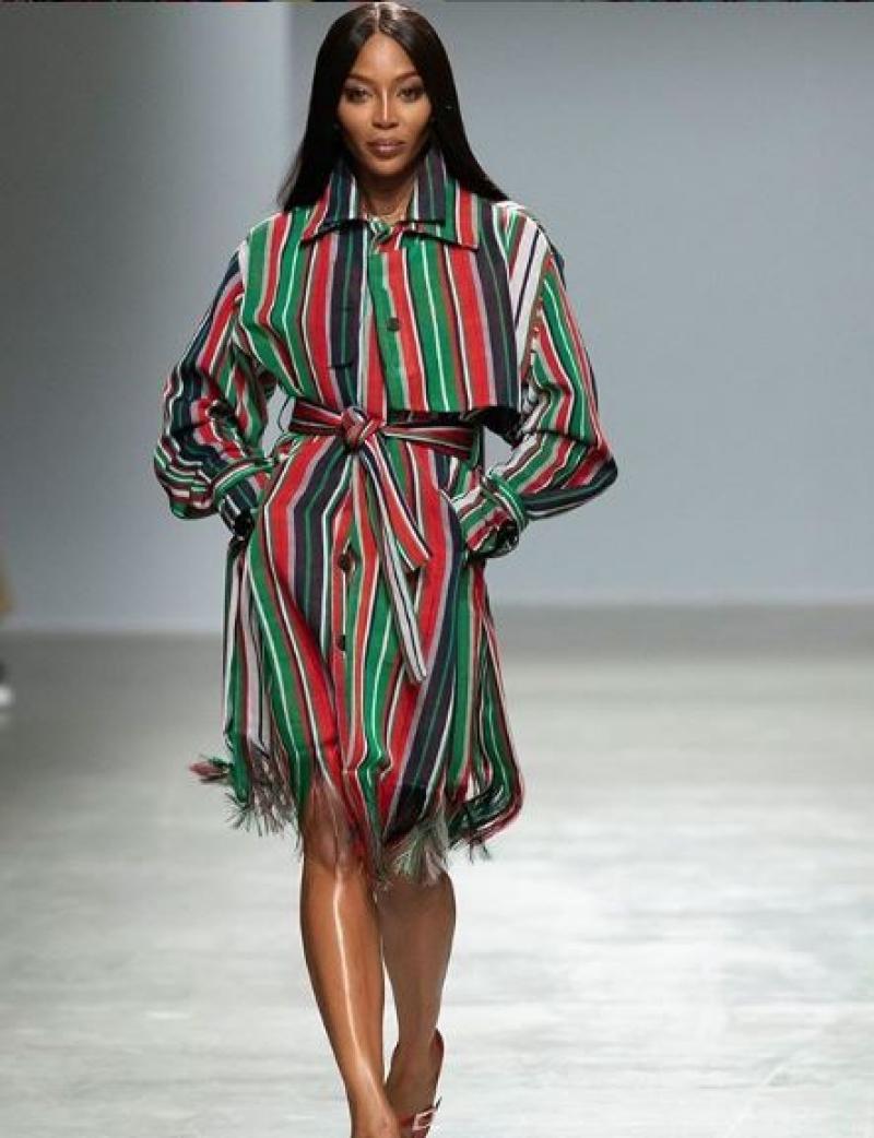 Kenneth Ize schitterde vooral tijdens de Paris Fashion Week met een vooraanstaande gast in de persoon van Naomi Campbell. De Nigeriaan bracht hulde aan de Afrikaanse knowhow, maar ook aan emblematische stoffen zoals aso oke, met een ruime selectie stukken met veelkleurige strepen.