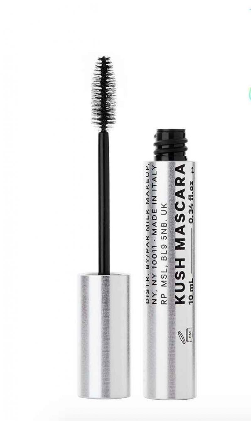 Kush Mascara De nieuwe mascara van Milk, Kush High Volume Mascara', gebruikt hennepolie om je blik te vergroten. Hij is makkelijk aan te brengen dankzij zijn romige textuur. De olie geeft de wimpers een vollere look en het boomvormige borsteltje geeft ze een harmonieuze ronding.