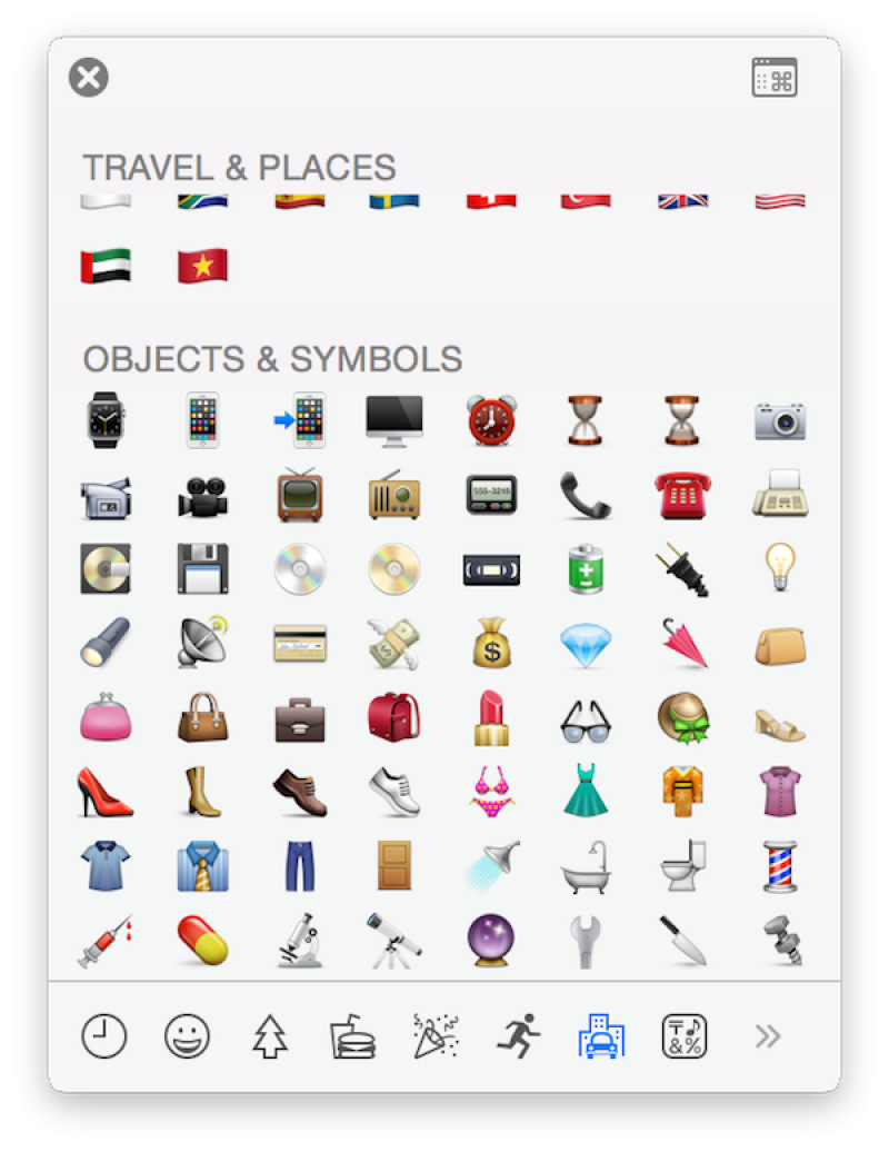 Het bijgewerkte emojipalet zal een verscheidenheid aan huidskleuren aanbieden voor alle menselijke icoontjes. Er zijn ook een aantal nieuwe symbolen die verschillende types van gezinssituaties voorstellen. Apple besloot om daarnaast ook meteen een waaier aan geactualiseerde objecten aan te bieden zoals een pictogram voor de iWatch en een aantal vlaggen van landen.