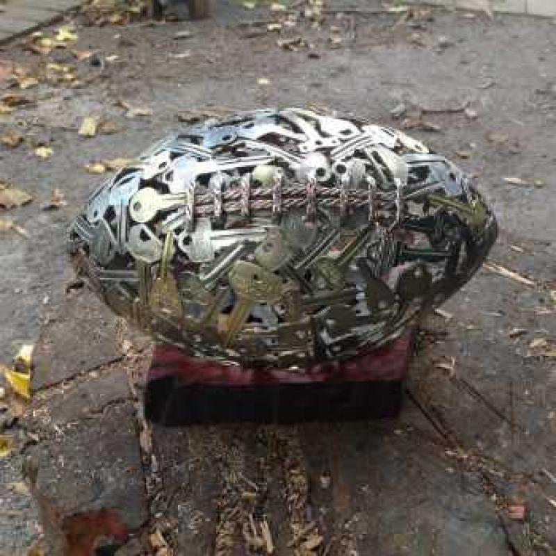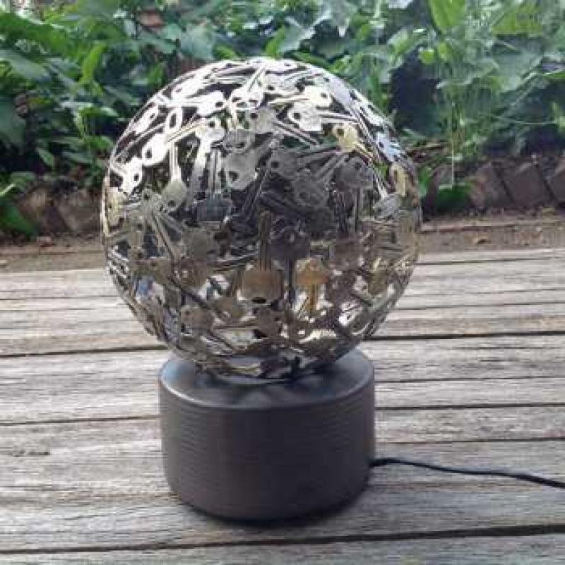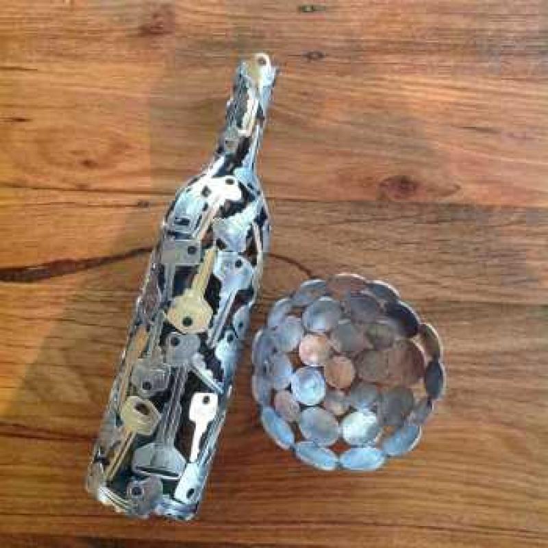 Michael - of Moerkey - maakt flessen, lampkappen en andere sculpturen uit oude sleutels en geldstukken. "Eigenlijk had ik de bedoeling om mijn schuur op te kuisen toen ik een oude koperen pijp terugvond. Ik besloot om ringen te snijden uit de pijp en maakte er een metalen bol van", vertelt hij. "De eerste voorwerpen waren ietwat ruw bewerkt, maar eens ik door had hoe het moest, kon ik mijn creativiteit de vrije loop laten."