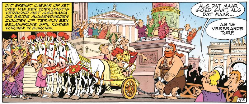 Het is het jaar 50 voor Christus. Onder bevel van Julius Caesar hebben de Romeinen vrijwel heel Gallië veroverd. Alleen in het noorden biedt een klein dorpje nog moedig weerstand. De inwoners van dit dorp doen niets liever dan de Romeinen het leven zuur maken Alle Asterix-lezers kennen het refrein en het beroemde kaartje op de eerste pagina vanbuiten. Het is maar een van de vele ingrediënten. De kunst van wat in de jaren 60 nog niet bekend stond als de gimmick kenmerkt het werk van Goscinny et Uderzo. Laten we zeggen dat er inderdaad een systeem is. Maar je moet wel het talent hebben om dat systeem te laten werken, antwoordde Albert Uderzo aan Numa Sadoul, die de tekenaar interviewde over de essentie van een Asterix-album. We nemen dat systeem' even onder de loep.