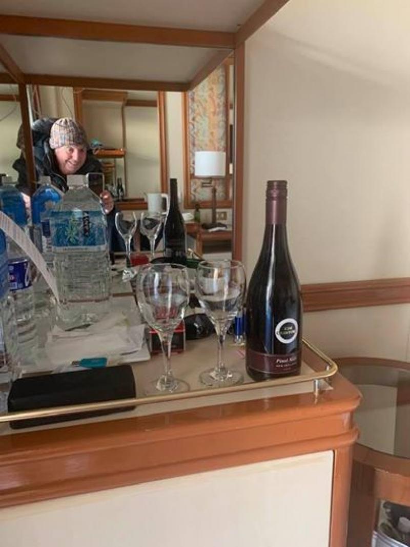 Om hun verplichte verblijf toch wat leuker te maken, hebben ze online wijn besteld. Ze hadden geregeld met de leverancier dat een drone de flessen leverden. "De Japanse kustwacht had geen fucking idee wat hen overkwam".