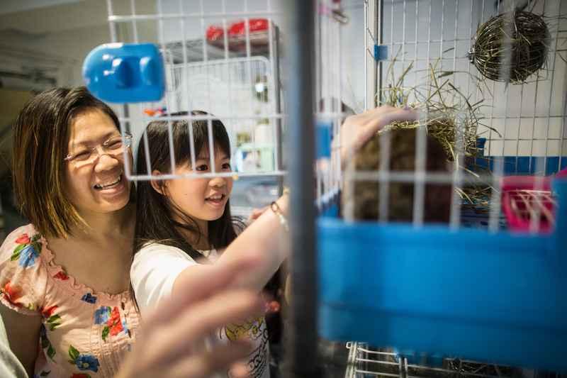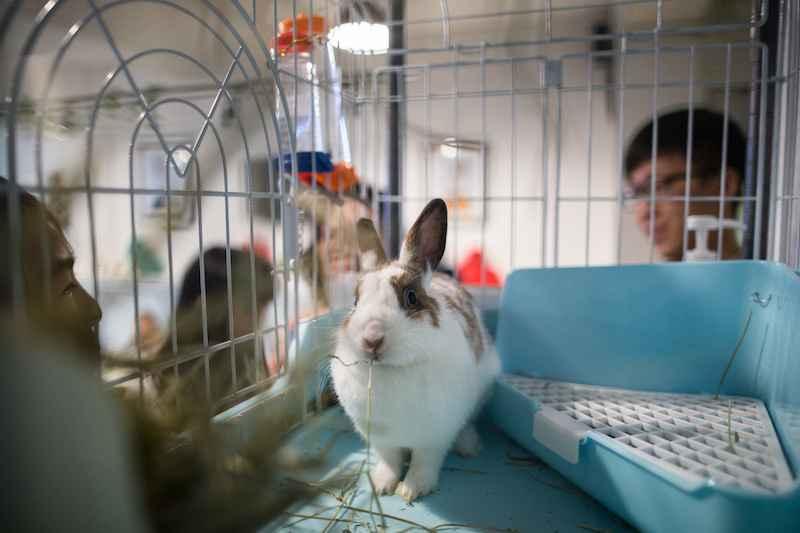 De pluisbollen zitten in afgelopen hekken, maar zijn er best gelukkig. "De konijnen zien er ontspannen uit en kunnen slapen en eten wanneer ze willen", beweert mederwerkster Kelly Chan. "Volgens mij is het café een goed plekje voor ze."