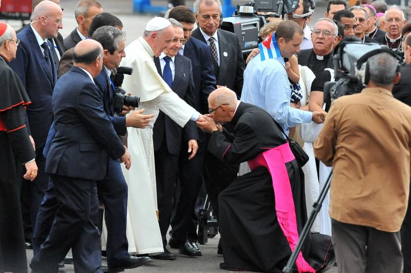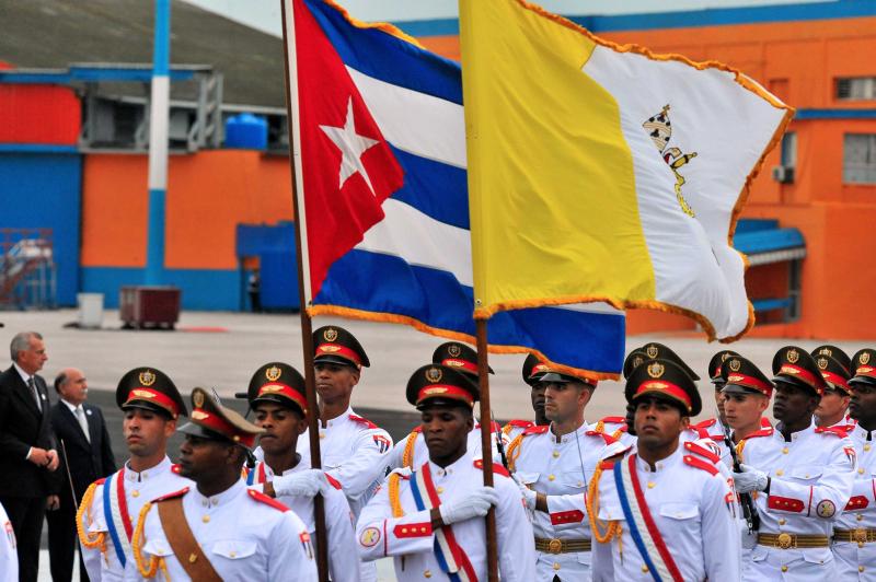 De paus werd op de luchthaven van Havana ontvangen door de Cubaanse leider Raúl Castro. Bij zijn aankomst pleitte hij onder meer voor een verdere toenadering tussen Cuba en de VS. Dat de gespannen relatie tussen beide landen weer genormaliseerd is, is te danken aan de bemiddeling van de paus.