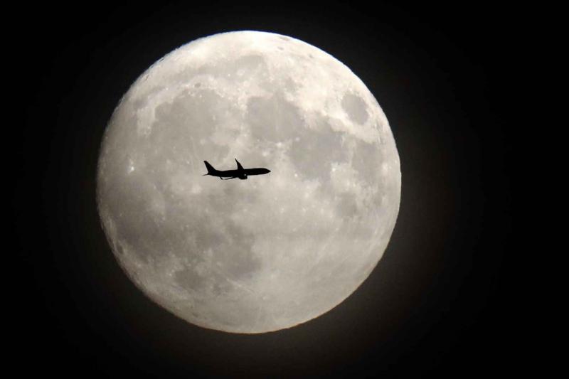 Het is bovendien de grootste supermaan van de eeuw. Ze is uitzonderlijk groot en helder. Hieronder ziet u de supermaan achter een vliegtuig dat boven Londen vliegt, een appartementsgebouw in Madrid, het Empire State Building in New York, een boom in Myanmar en een Sojoez-ruimteraket in Kazakstan.