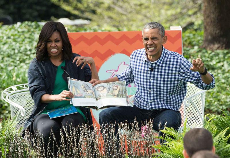 Hij koos voor zijn "favoriete kinderboek": 'Where the Wild Things Are' van Maurice Sendaks. En die voorleessessie ging gepaard met een resem gekke bekken en expressieve gezichtsuitdrukkingen.