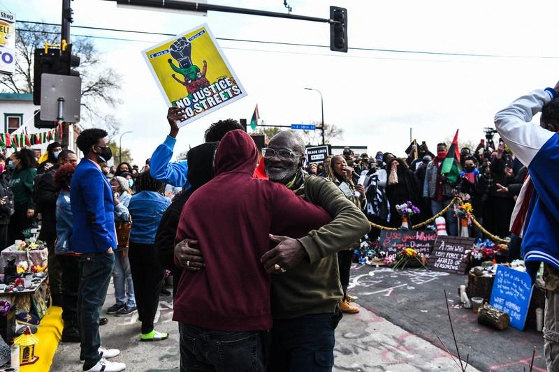 "Nu we rechtvaardigheid hebben gekregen voor George Floyd, is Daunte Wright aan de beurt", zei een demonstrant. Die verwees naar de 20-jarige zwarte man die vorige week is doodgeschoten in Brooklyn Center.