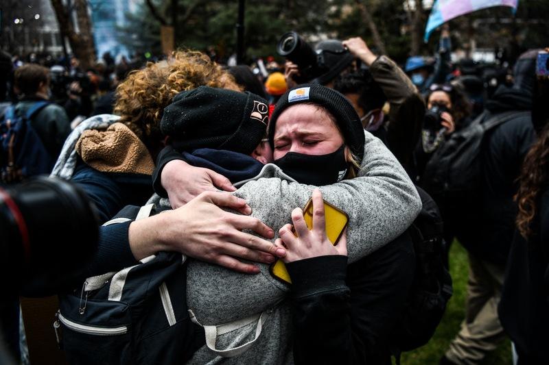 "George Floyd komt niet meer tot leven, maar dit is de rechtvaardigheid waar we naar zochten", zei een 25-jarige omstander tegen de krant. "Dit is de eerste keer dat we het gevoel hebben dat er echt naar ons is geluisterd." Sommige ouders hadden ook hun jonge kinderen meegenomen. "Ik wilde dat ze dit zouden zien", zei een 33-jarige vrouw.