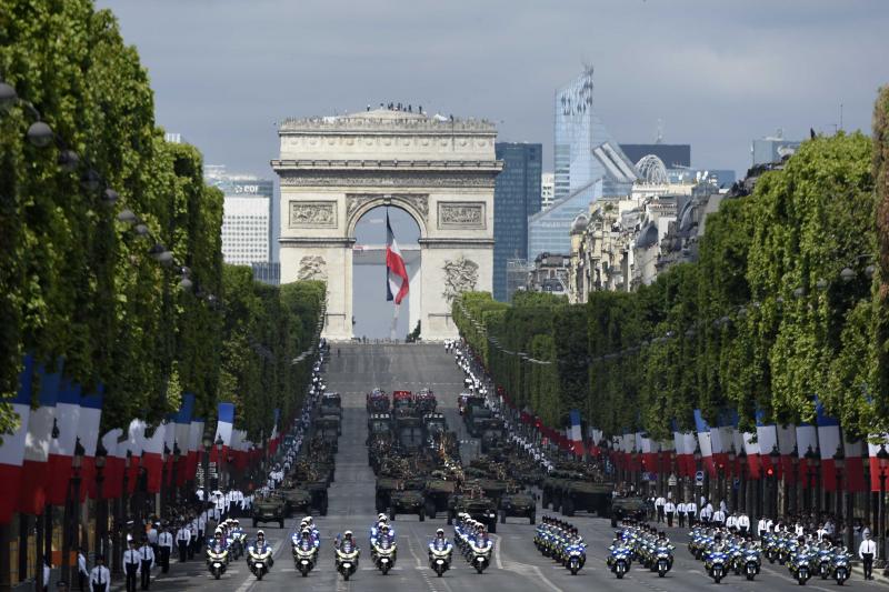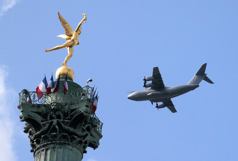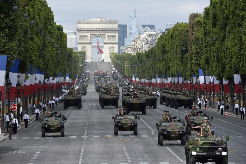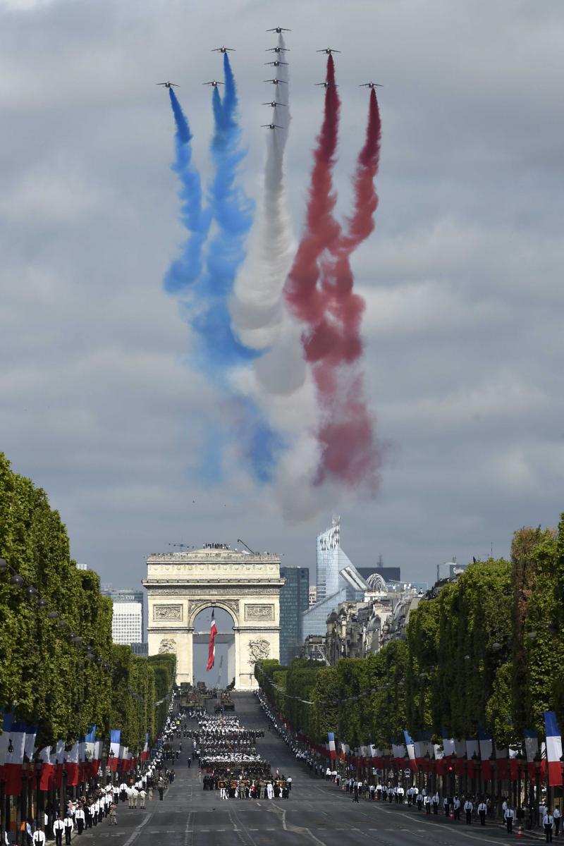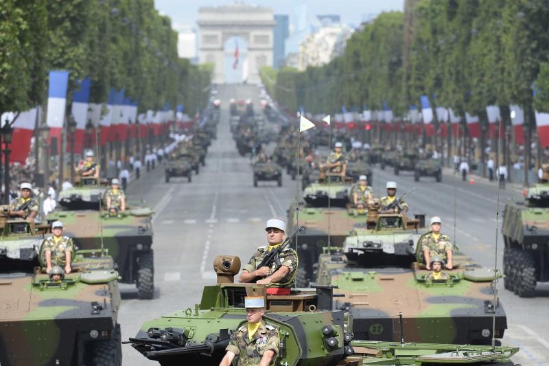 Frankrijk viert vandaag zijn nationale feestdag. In Parijs vond naar jaarlijkse gewoonte een militaire parade plaats, en vlogen ook de gevechtsvliegtuigen van de luchtmacht in formatie over de hoofdstad.