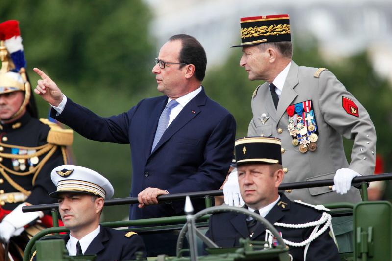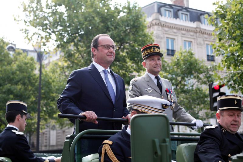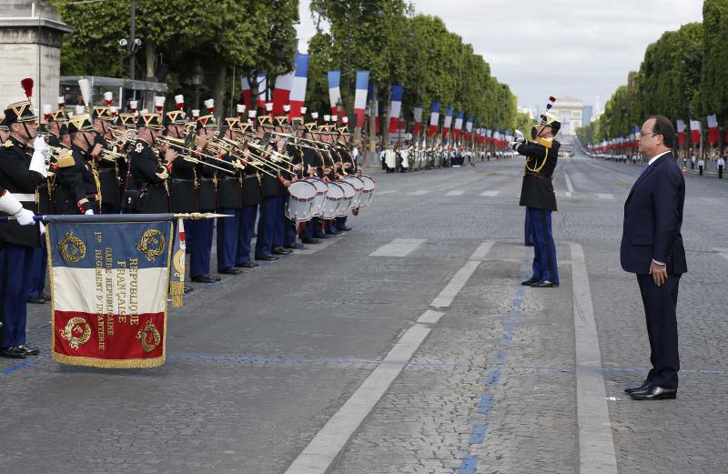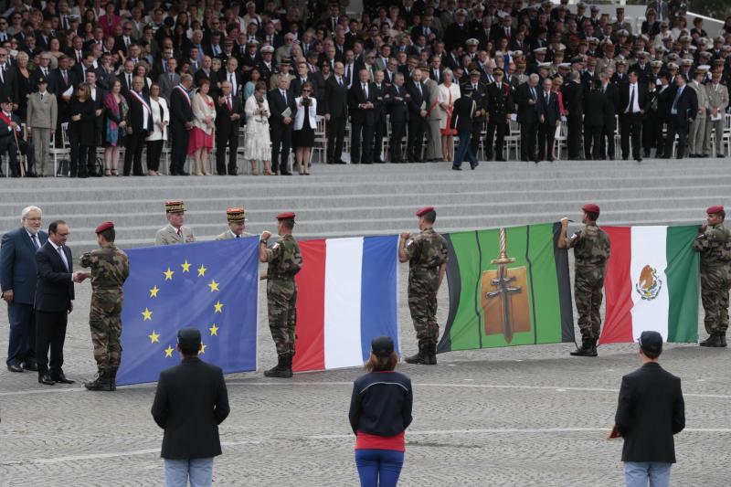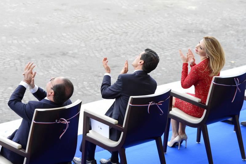 De Franse president François Hollande woonde de plechtigheden op de Champs-Elysées bij met zijn Mexicaanse collega Enrique Peña Nieto.