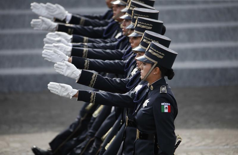 Mexicaanse gendarmes marcheren mee. AFP / THOMAS SAMSON