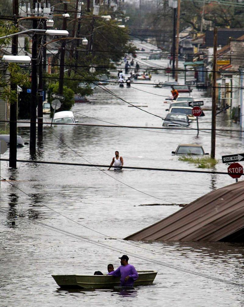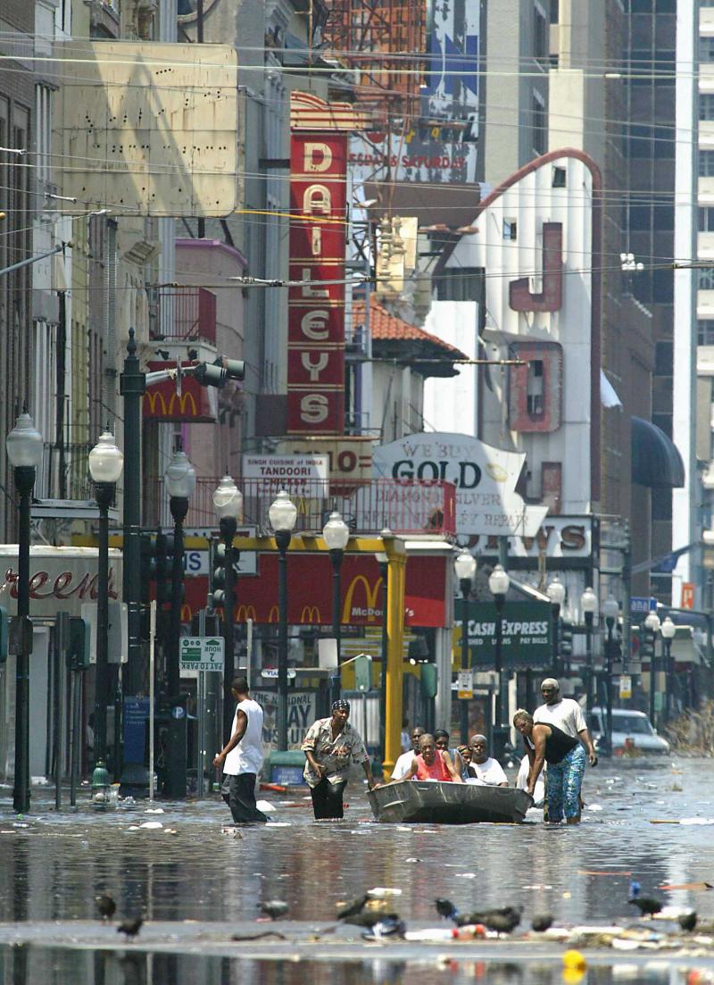 Tien jaar geleden werd de Amerikaanse kuststad New Orleans verwoest door orkaan Katrina. Enkele beelden van de vernieling van toen.