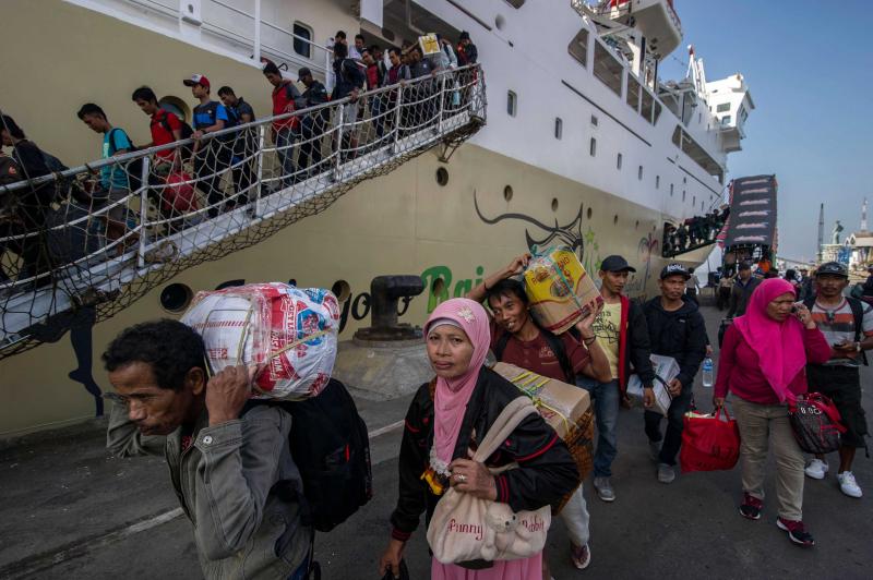 Ook in Indonesië kwam een exodus van mensen die naar hun familie reizen op gang. AFP / JUNI KRISWANTO