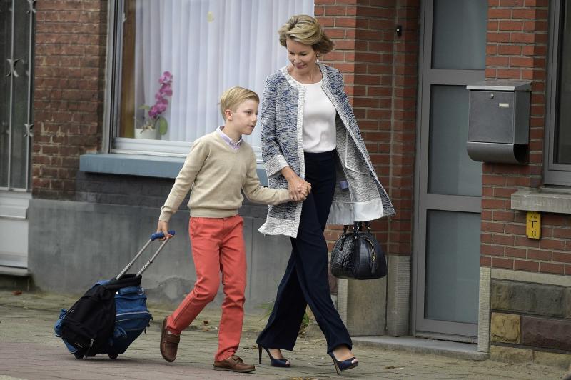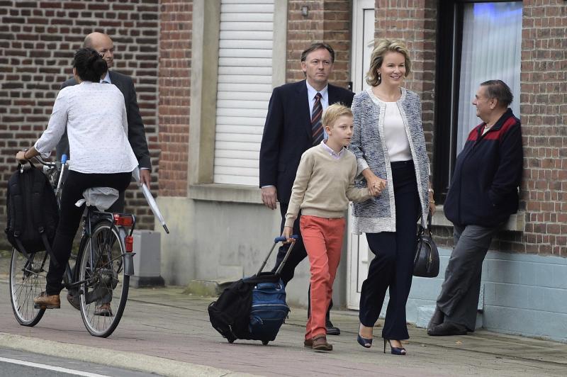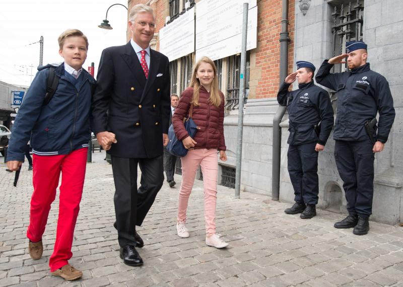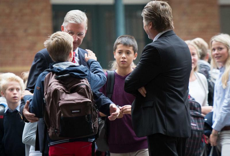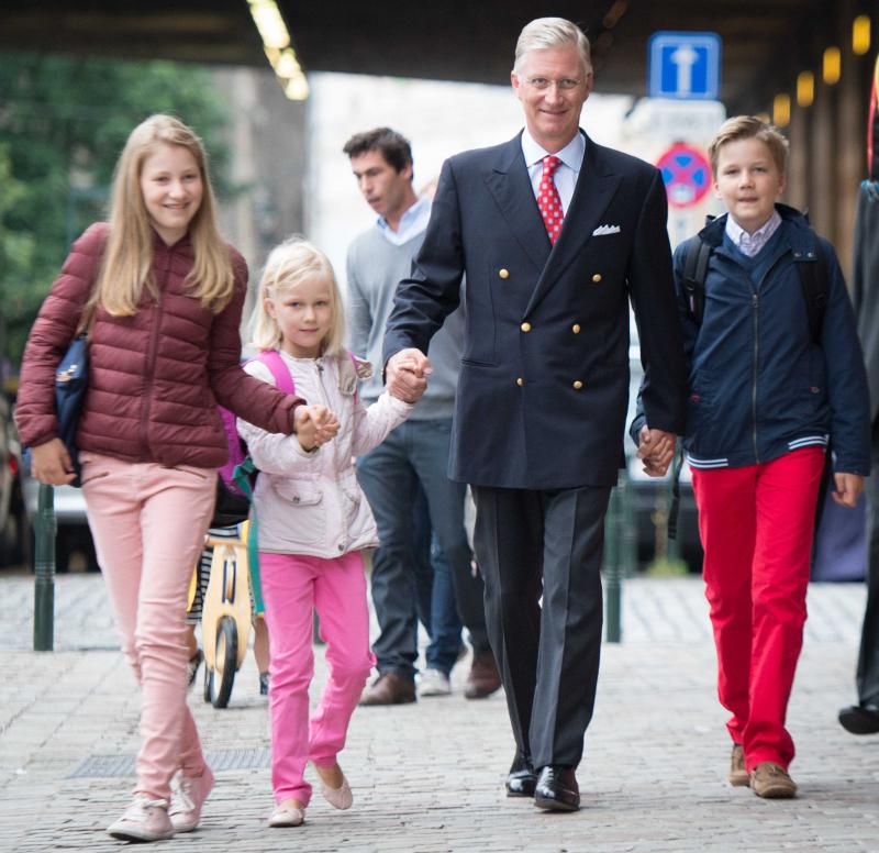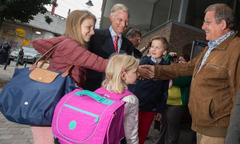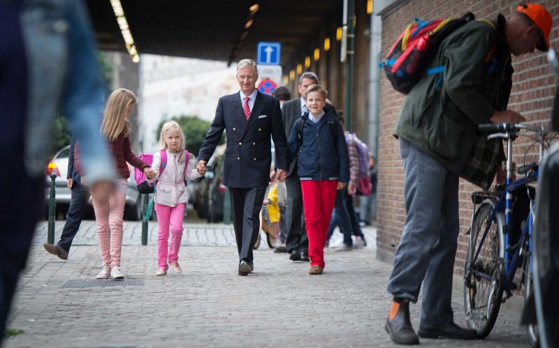 Terwijl koningin Mathilde prins Emmanuel naar de Eurekaschool in Kessel-Lo begeleidde, zette koning Filip prinses Elisabeth, prins Gabriël en prinses Eleonore af aan het Sint-Jan Berchmanscollege in Brussel.