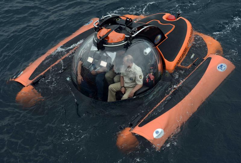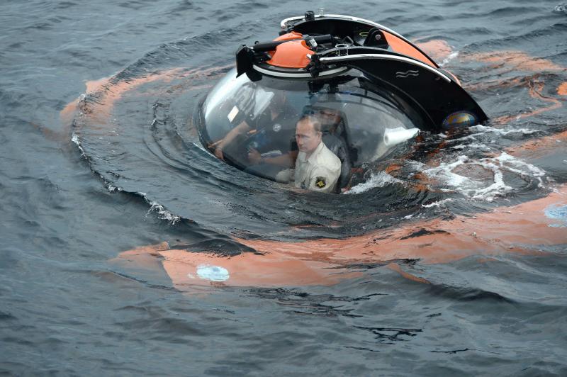 De president stapte gisteren samen met enkele experten aan boord van een wetenschappelijke onderzeeër en daalde af naar een wrak uit de elfde eeuw. De resten van een Byzantijns schip op de zeebodem waren fascinerend, zei Poetin.