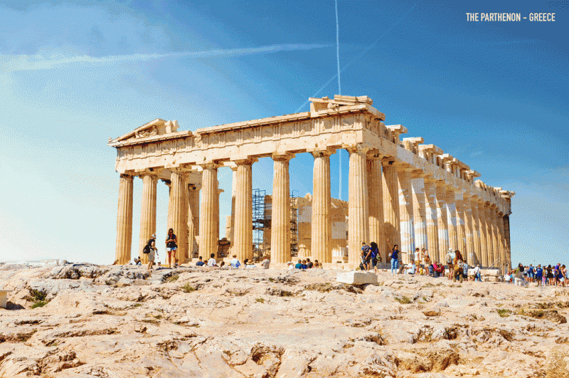 Om de gifs tot een goed einde te brengen, sloegen reiswebsite Expedia en kunstenares Maja Wronska de handen in elkaar. Dankzij hun bewegende plaatjes kan je met eigen ogen zien hoe sommige monumenten er millennia geleden uitzagen.