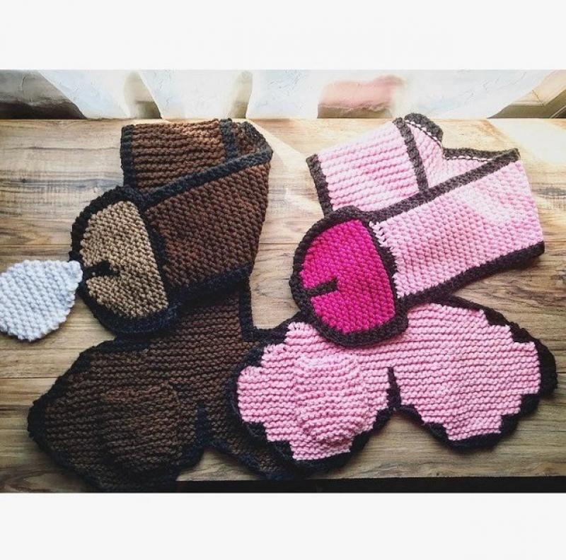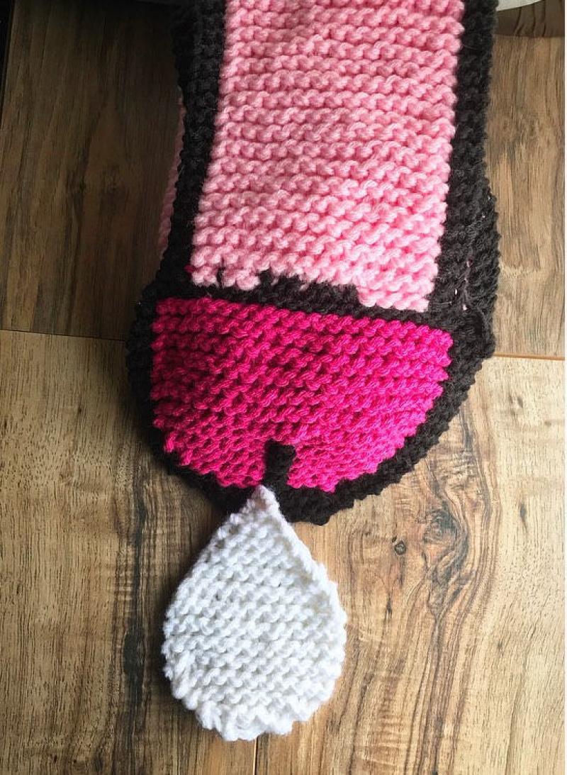 Etsy is een online webshop waar iedereen zijn zelfgemaakte hebbedingen kan verkopen. KnotYouKnitworks valt op door een zelfgebreide penissjaal. De roze of bruine sjaal is maar liefst anderhalve meter lang en bevat een handig opbergzakje. Leuk detail: er druppelt ook wat wit sperma uit de sjaal...