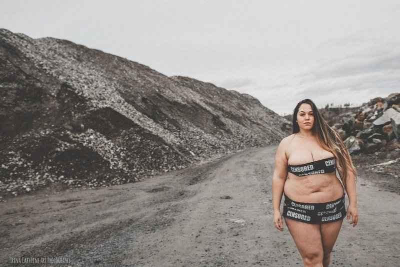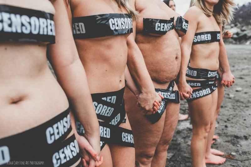 Trina trok met een hele groep vrouwen die ze online had gevonden naar een rotsachtige plek in Canada. De dames kregen allemaal een stuk tape over hun borsten en schaamstreek geplakt, met 'gecensureerd' op. Heel fijn is dat Trina er in slaagde een diverse groep vrouwen voor haar lens te krijgen. De één had net een kind gekregen, de ander was juist veel afgevallen en iemand anders blaakte dan weer van zelfvertrouwen. Niemand kende elkaar, maar na de shoot waren ze allemaal beste vriendinnen, aldus Trina aan Metro UK.