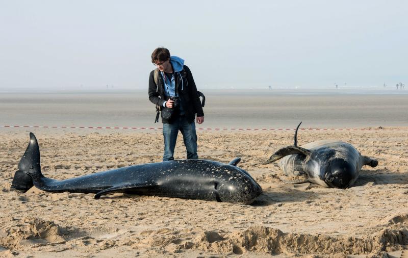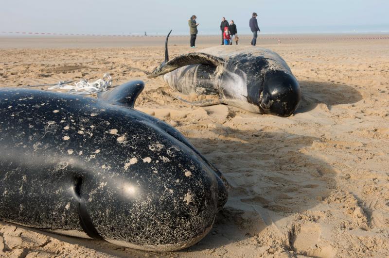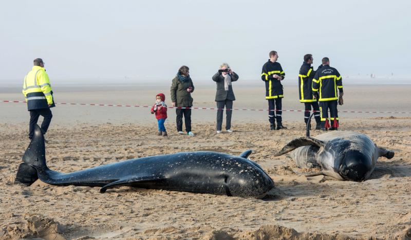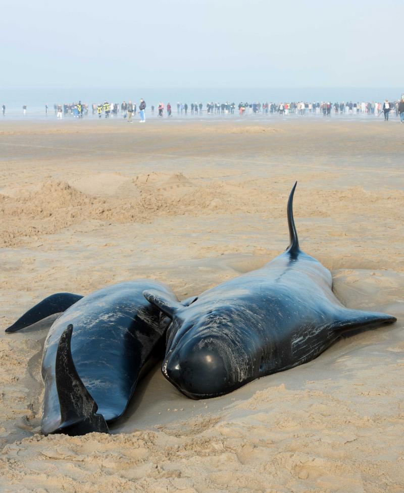 Dat een volledige familie walvissen aanspoelt, is erg uitzonderlijk. Vermoedelijk is het dominante mannetje gestorven op zee, waarop de rest van de familie het kadaver is gevolgd.
