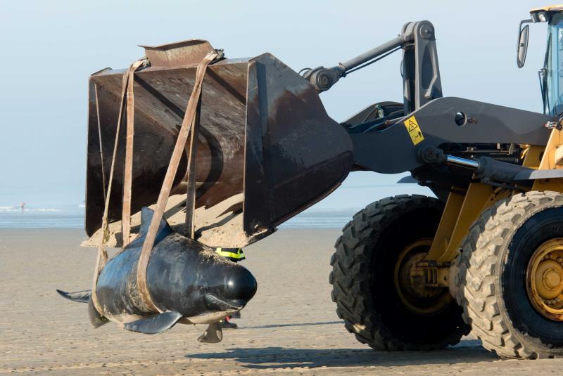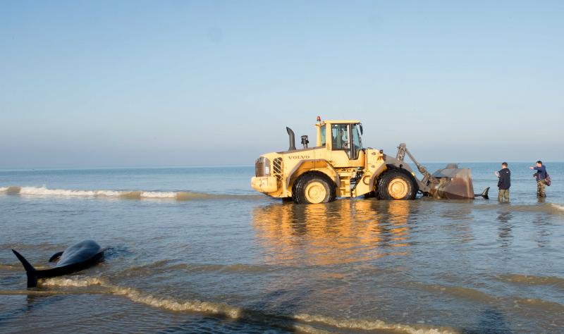 Vier dieren waren nog in leven en kregen water van de brandweer. Ze werden met een tractor naar de zee gedragen, maar slechts drie walvissen bereikten levend het diepe water. Een autopsie moet de juiste doodsoorzaak van de gestorven dieren aantonen.