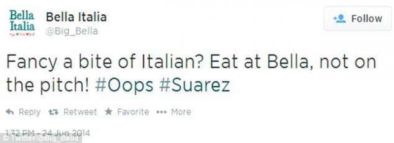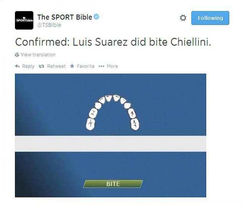 Gisteren was het weer prijs. Luis Suàrez beet Chiellini in de schouder maar ontliep een rode kaart omdat de scheidsrechter het gemist had. De miljoenen toeschouwers en duizenden camera's hadden het wel gezien en nog geen minuut later explodeerden Twitter en andere social media. Supporters en voetballiefhebbers die vol ongeloof zich afvroegen of hij het echt wel gedaan had, tweetten er lustig op los. Een paar minuten later waren de eerste grapjes daar en nu een dag later bieden wij jouw de allerbeste grapjes aan. Deze ingevingen vonden wij even geniaal als hilarisch. We trappen af met een filmpje die de geschiedenis van de bijtgrage Luis uitlegt: https://www.youtube.com/watch?v=Y2pUU2valTE Ook de FIFA heeft dankzij de nieuwe technologie waar ze graag mee uitpakken, kunnen bevestigen dat er werd gebeten Suàrez krijgt na zijn trofee voor beste speler van de Premier League nog een andere Restaurants in Engeland en Italië spelen handig in op de gratis publiciteit Snickers verandert zijn hilarische reclame en geeft een hoofdrol aan de Uruguayaan En de nieuwe Panini-stickers van Suàrez en Chiellini zijn ook al gearriveerd