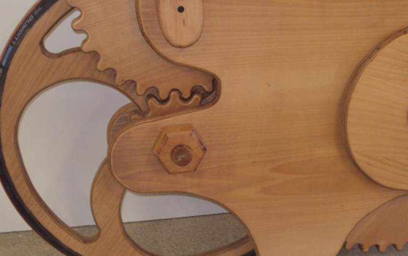 Inspiratie voor het buitengewone project haalde de leerkracht houtbewerking uit een reportage over de zogenaamde Splinterbike, een ontwerp van de Brit Michael Thompson. «Die racefiets bestaat ook voor honderd procent uit hout, maar je kan er enkel mee rechtdoor rijden. Onze leerkracht dacht bij zichzelf Dat kan ik beter'.»