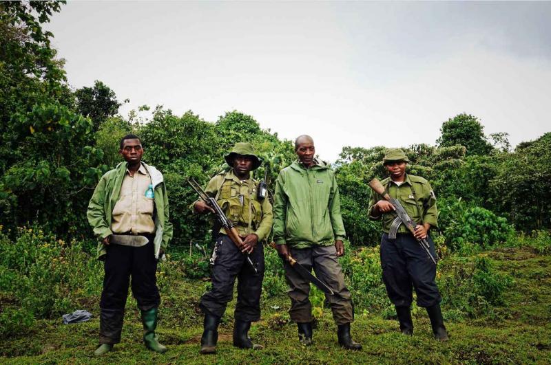 "Achteruit. Ik denk dat hij wil spelen." Onze ranger en gids Julian waarschuwt ons voor een enthousiaste gorilla-puber die onze richting uitkomt. Ik sta zo ongeveer midden in de jungle, op nog geen drie meter van de tienkoppige gorillafamilie die we na een amper een uurtje hiken gevonden hebben. De imposante mannetjes, de zogenaamde zilverruggen, zijn niet alleen indrukwekkend vanwege hun grootte. Hun blik en manier van bewegen vertoont treffende gelijkenissen met de mens. "Zo hadden wij er ook kunnen uitzien", bedenk ik terwijl ik me verbaas over de soepelheid en de snelheid waarmee de dieren moeiteloos door het dichte bamboebos manoeuvreren. De gorilla's komen dicht, heel erg dicht. Ik ben dan ook zeer dankbaar dat we in het gezelschap zijn van vier gewapende rangers, die razendsnel voor ons komen springen zodra een van de dieren speels provoceert.