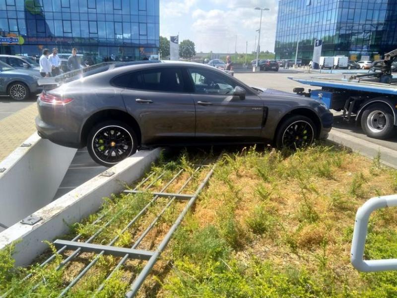 Een bestuurder van een Porsche Panamera heeft gisteren ongelofelijk veel geluk gehad. De bestuurder vergiste zich ter hoogte van de Ghelamco Arena in Gent van pedaal, waardoor de wagen over een afsluiting reed en bijna in de ondergrondse parking van de Brico Planit donderde.