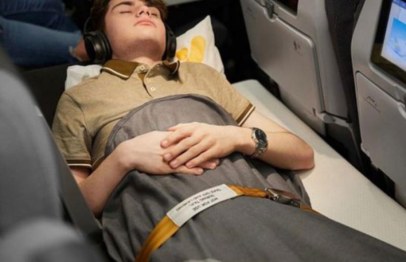 Luchtvaartmaatschappij Thomas Cook heeft een oplossing voor de reizigers die al zittend geen slaap kunnen vatten op een vliegtuig. Ze introduceren de zogenaamde Sleeper Seat' op hun vliegtuigen. Dat is een comfortabele matras die zich spreidt over drie aangrenzende stoelen. Op die manier kan je heerlijk languit genieten van je vlucht.