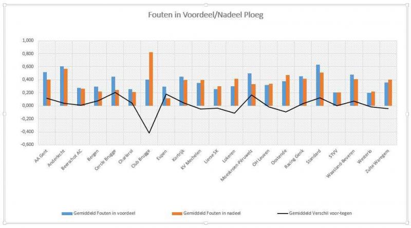 Zo blijkt dat Standard de ploeg is die de meeste foute beslissingen in haar voordeel kreeg, terwijl Club Brugge veruit het meest werd benadeeld bij foutieve beslissingen. Busschaert en De Doncker beklemtonen wel dat er geen enkele scheidsrechter systematisch in het nadeel van Club Brugge fluit. De foute beslissingen in het nadeel van blauw-zwart werden genomen door verschillende scheidsrechters en niet door enkele individuen.
