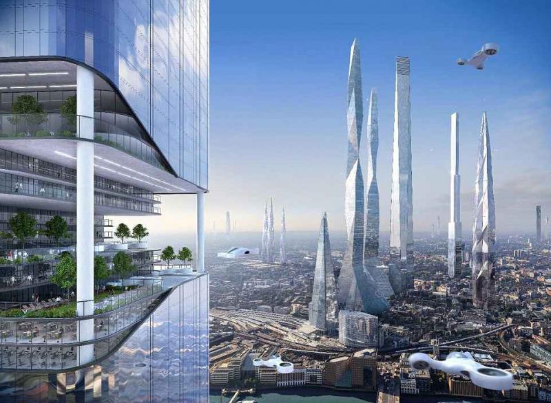 Binnen 100 jaar barsten onze steden uit hun voegen, schrijft de onderzoekster in haar SmartThings Future Living rapport, dat ze uitvoerde in opdracht van Samsung. Hierdoor zullen mensen moeten verhuizen naar gigantische, transparante bollen onder water. Daarnaast is Aderin-Pocock er rotsvast van overtuigd dat mensen steeds meer onder de grond in diepe kelders zullen wonen, en dat wolkenkrabbers ongekende hoogtes zullen bereiken. Deze nieuwe woningen worden zelfs zo hoog, dat we een auto nodig hebben in de vorm van een drone om rechtstreeks naar je woonst te vliegen.