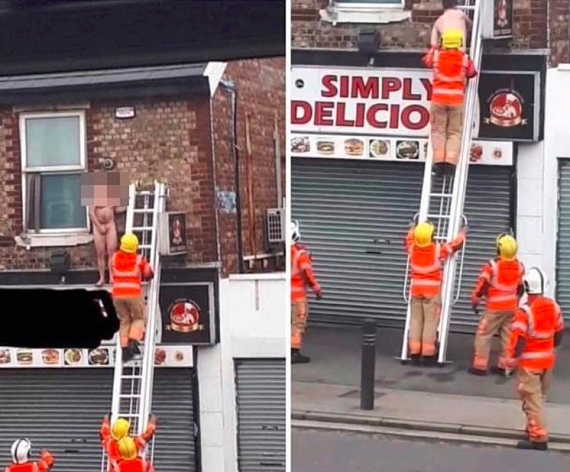 De pompiers van Manchester, in het Verenigd Koninkrijk, stonden voor een grote verrassing toen ze zagen waarvoor ze opgeroepen werden. Eens aangekomen zagen ze een naakte man die zijn evenwicht probeerde te houden op de rand van een gevel, boven een kebab restaurant. Terwijl probeerde hij zijn intieme delen te verbergen.