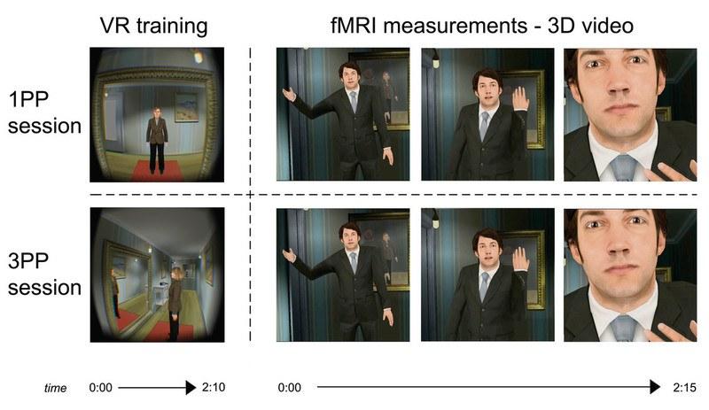 Na het VR-gebeuren werd bij alle deelnemers een scan genomen om hun hersenactiviteit te meten terwijl ze een 3D-film keken. Daarin zagen ze opnieuw de vrouw in de gang, maar nu beleefde iedereen de scene vanuit haar perspectief. Bovendien kwam deze keer een schreeuwende man dreigend op haar afgelopen.