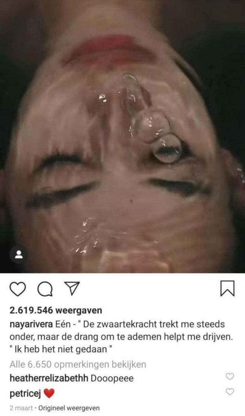 Bij een filmpje uit begin maart, dat hieronder is te zien, schreef Naya al een opvallende tekst: "Een Zwaartekracht blijft me naar beneden trekken, maar de drang om te blijven ademen laat me drijven."