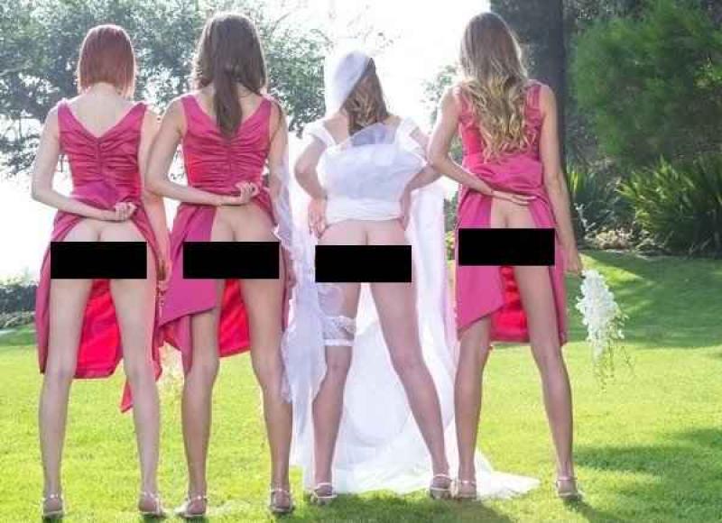 Na de selfie en varianten is het weer tijd voor een nieuwe hippe modetrend in de fotografie. Deze keer wordt er op aangedrongen dat de bruidsmeisjes op je huwelijk op de foto met de bruid de beste kant van zichzelf laten zien. Dat blijkt een naakte achterkant te zijn. Deze trend vloeit voort uit een andere Instagramtrend waarbij vrouwen werden aangemoedigd om zichzelf topless te laten fotograferen op een schilderachtige achtergrond. Nu zijn het dus blote konten op een huwelijk. Eerlijk gezegd is het wel amusant om te zien, maar oordeel vooral zelf.