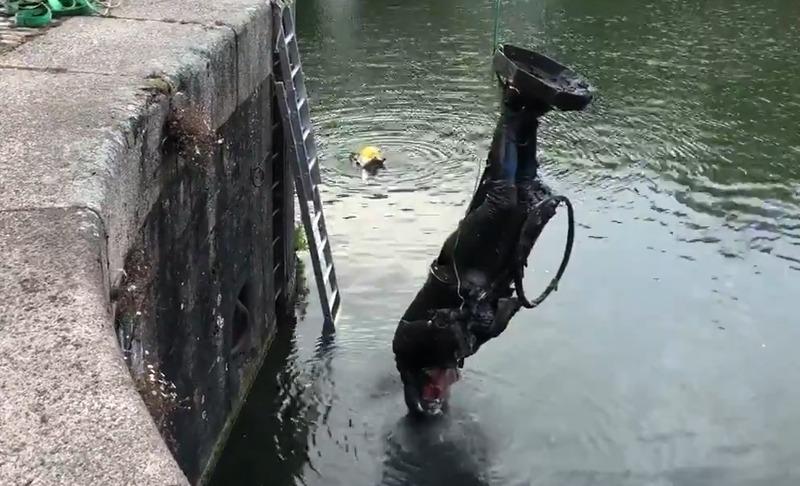 Het beeld van Colston is uit het water gehaald en naar een museum gebracht. Daar wordt het tentoongesteld naast Black Lives Matter-aanplakbiljetten.