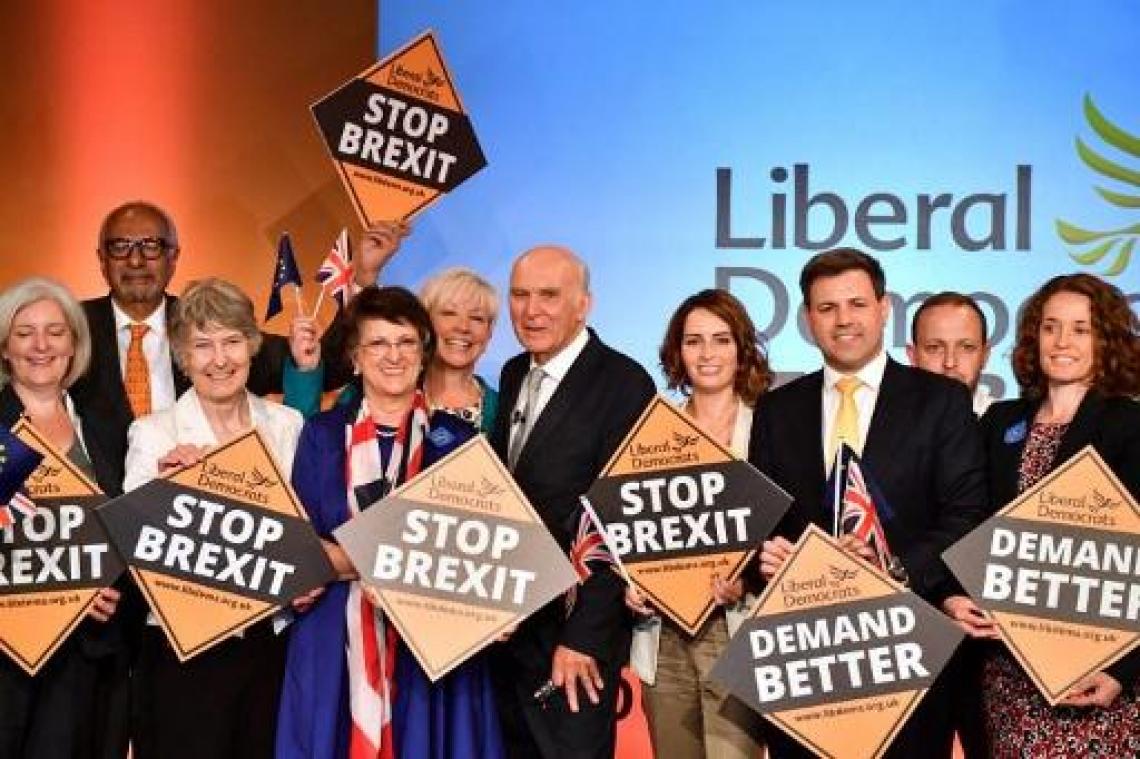 De Britse Liberal Democrats trekken volop de brexit-kaart in de aanloop naar de Europese verkiezingen eind deze maand. "Bollocks to brexit", is de campagneslogan. Vrij vertaald is dat "klotebrexit". Partijleider Vince Cable stelde de Europese campagne van zijn partij vandaag voor. "Bollocks to brexit" is een populaire slogan bij brexit-tegenstanders, en is onder meer op t-shirts, stickers en campagnebussen te zien. Maar de Liberal Democrats, zelf voorstander van een tweede referendum over de brexit, nemen de slogan nu over in hun Europese campagne. De meer zedige Lib Dem-kandidaten mogen echter ook campagne voeren met de slogan "Stop brexit".