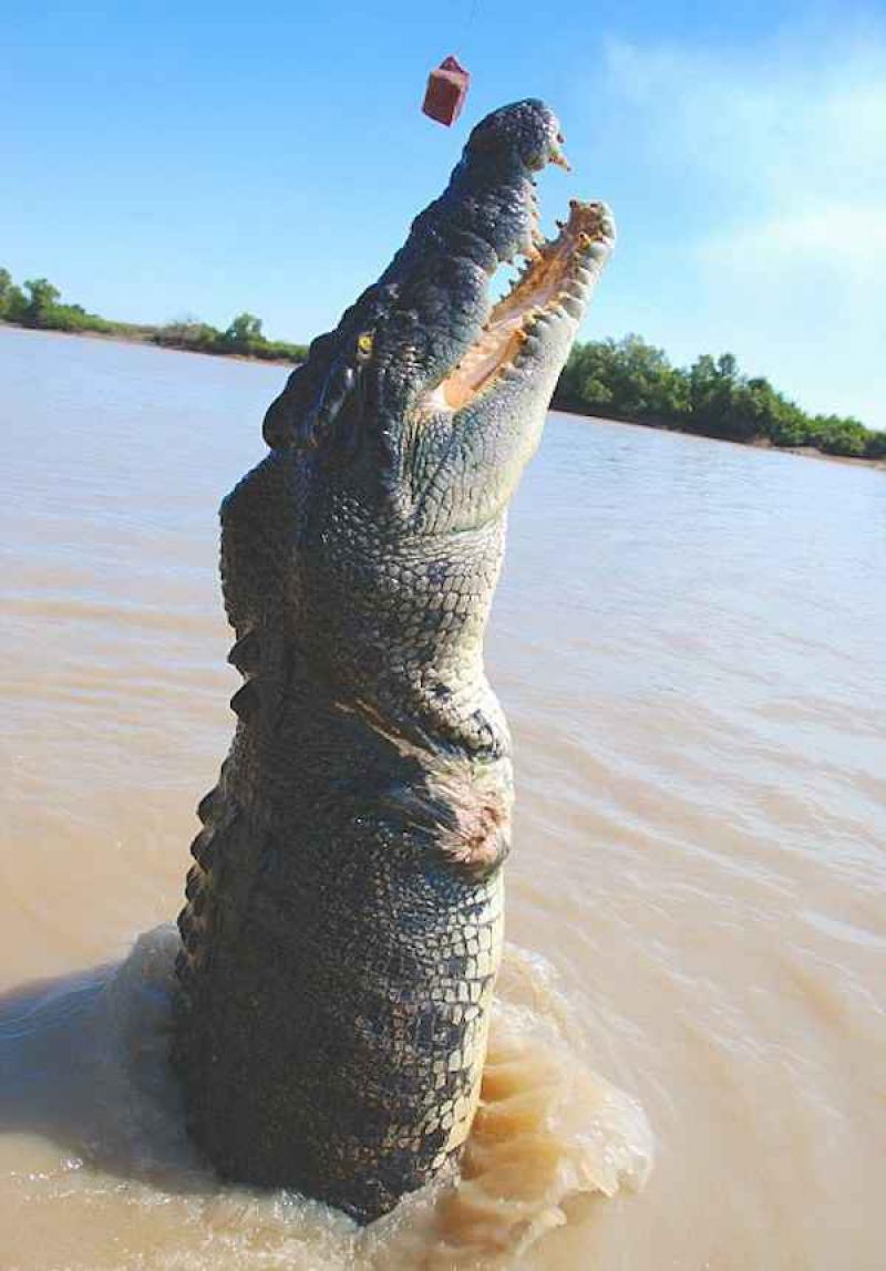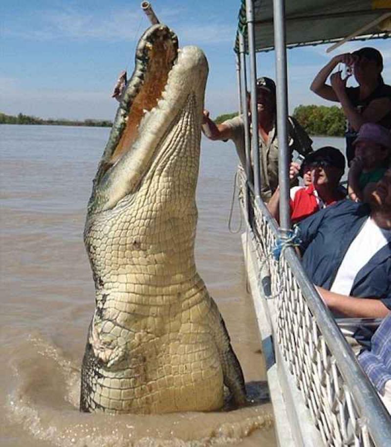 Zijn naam is Brutus en hij zwemt al 80 jaar rond op deze planeet. Hij weegt 2 ton en hij is al jaren de ster tijdens rondleidingen op de Kakadu Adelaide River in Australië.