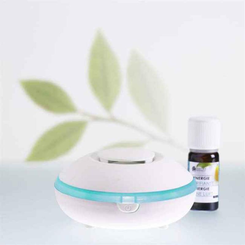 Deze kleine draagbare kei met blauw licht van Nature & Découvertes verspreidt je favoriete essentiële olie waar je maar wil, zowel op bureau als op reis. Je kan hem activeren door hem met een USB-kabel op je computer aan te sluiten, maar hij werkt ook op batterijen. (25 euro)