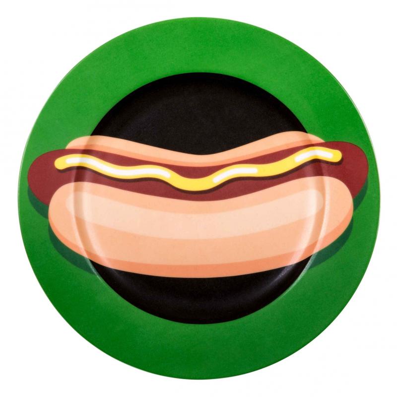 Het guitige Studio Job ging aan tafel bij het al even excentrieke Italiaanse designhuis Seletti, voor dit charmante porseleinen bord met hotdogprint. (29 euro)